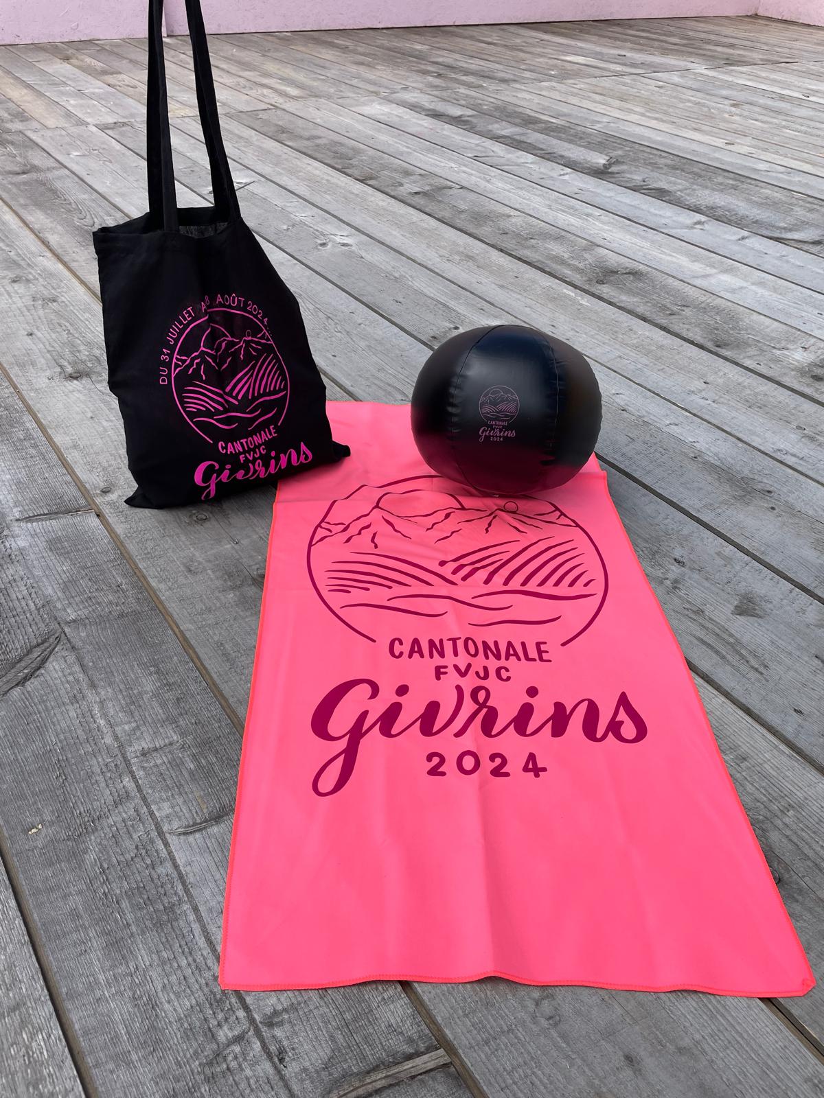 Pack composé d’un linge, un ballon gonflable et un tote bag.