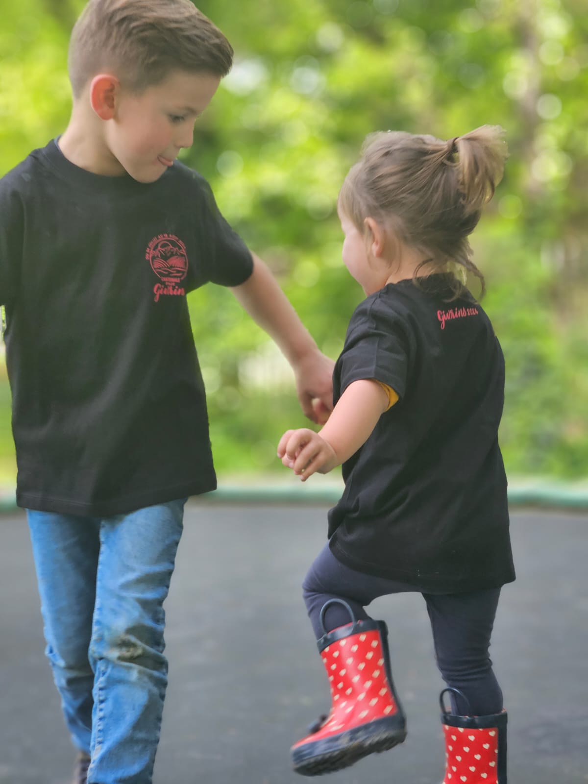 Noir, logo sur le cœur en rose, écriture dans le dos au milieu en haut en rose